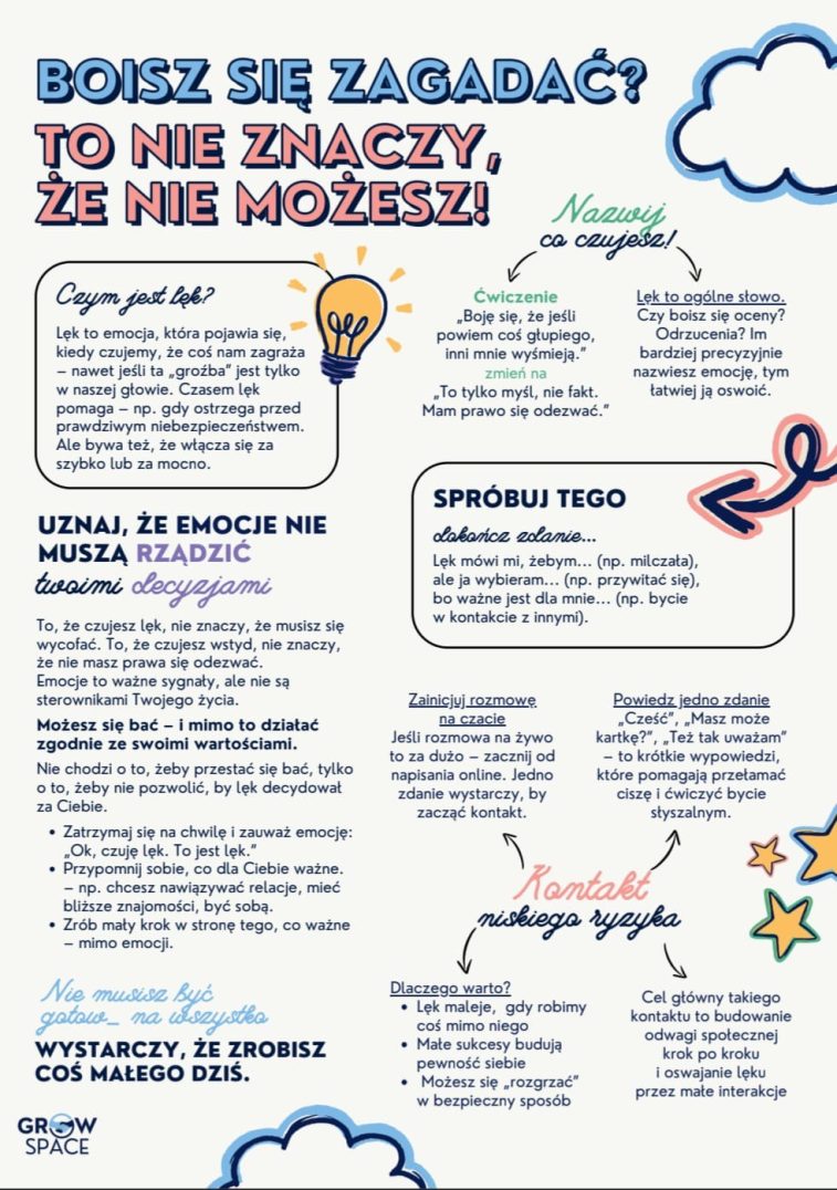 Możesz zgłosić się do pań pedagog, pani psycholog, dyrekcji, nauczycieli lub swojego wychowawcy. Nie zostaniesz bez pomocy.
