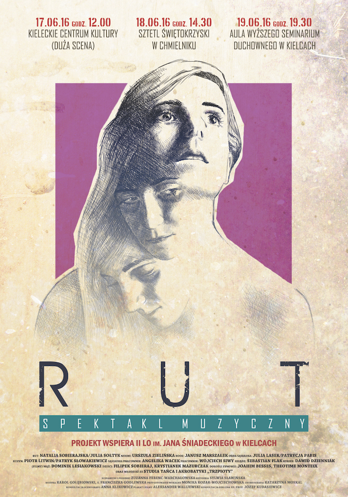 Musical inspirowany biblijną „Księgą Rut” to owoc pracy licealistów z II LO im. Jana Śniadeckiego i wielu życzliwych kieleckich profesjonalistów. Na scenie zobaczymy także studentów oraz tancerzy ze Studia Tańca i Akrobatyki „Trzpioty”. Muzykę skomponowali Karol Gołębiowski i s. Franciszka Godlewska. Całość wyreżyserowała aktorka – Sylwia Sławińska. Teksty napisano pod okiem biblisty – ks. prof. Józefa Kudasiewicza. Akcja toczy się współcześnie w Kielcach i podkreśla wartość więzi rodzinnych. Wstęp wolny.